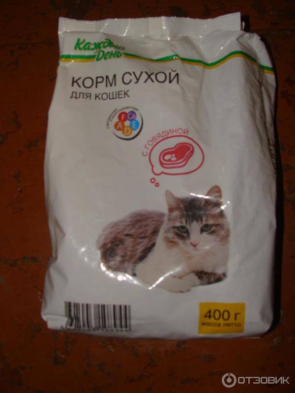 - Сухой. Позволяет кормить кошку по свободному графику. Предупреждает образование зубного налета. Реализуется в пакетах и коробках разного объема. При условии обеспечения герметичности упаковки, может храниться несколько месяцев. Содержит большое количество сахара и всего 10% воды.