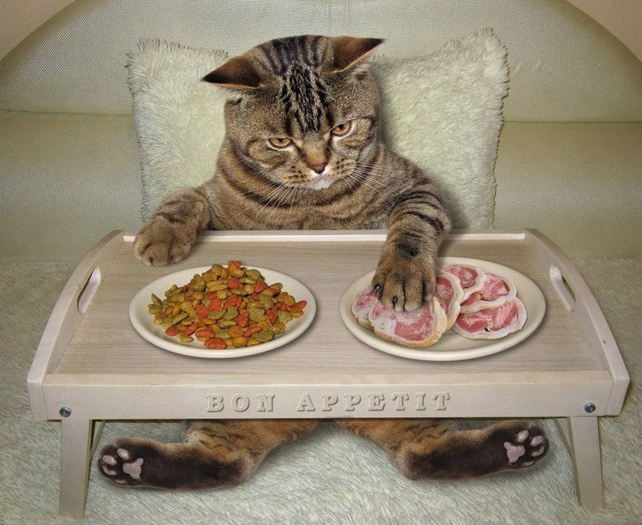 Еще одной причиной появления синдрома привереды может быть то, что кошку кормят объедками со стола. А может даже не объедками а целыми королевскими блюдами. Как вы думаете, будет ли кошечка есть свою скучную однообразную, несоленую и полезную еду из миски, если вечером за ужином она сможет выклянчить курицу-гриль, сырную запеканку или филе-миньон? Конечно же, она будет целый день голодать, дожидаясь возможности съесть что-то более вкусное.